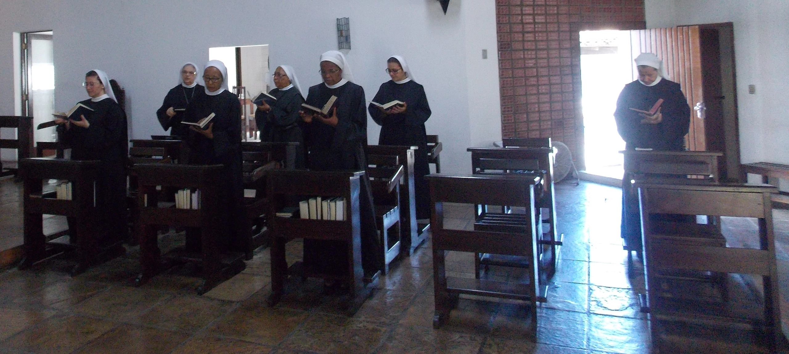ao sacrifício de Cristo. Em meio às atividades as monjas param e se entregam ao louvor divino.